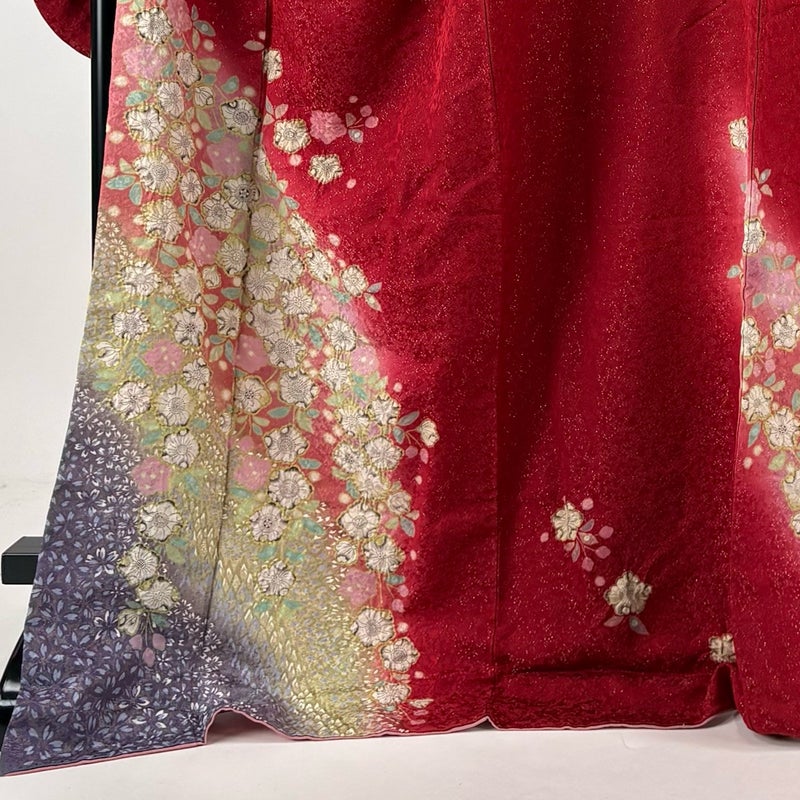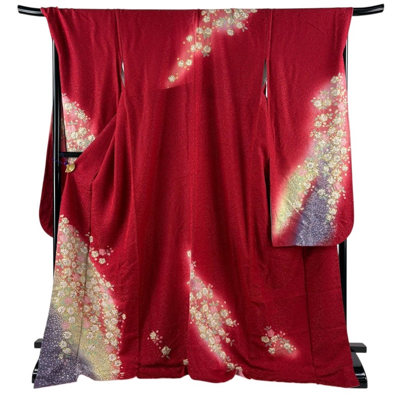 【振袖】 赤系 赤 名品 A 約170cm~約179cm 裄丈69cm以上 (L)size 袖丈91cm以上 9990-29990 美品 二万以下