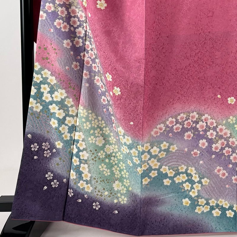 【着物ランク】名品 【素材】正絹 【身丈】約165cm 【裄丈】約68.5cm 【袖丈】約109.5cm 【袖幅】約34.5cm 【前幅】約24cm 【後幅】約30cm 【サイズ】L 【着物仕立て】袷 【着用時期】10~5月 【状態ランク】ランクA 【着物着用シーン】成人式、謝恩会