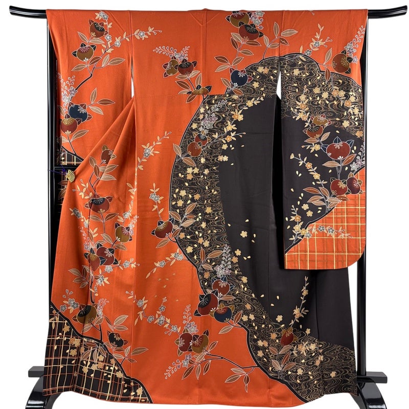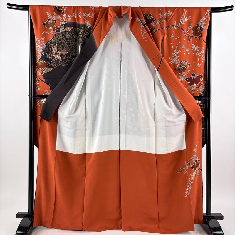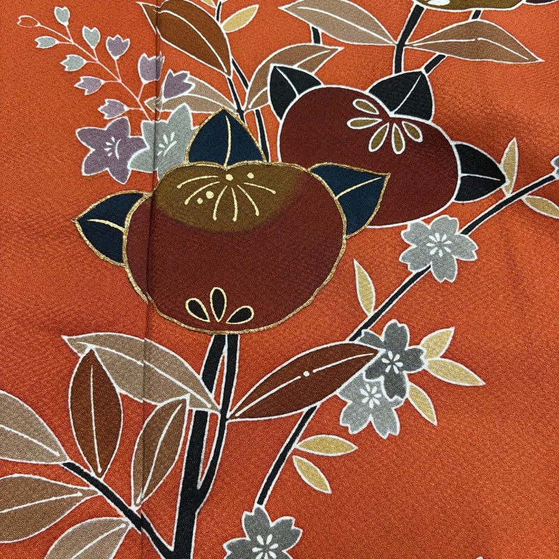 【振袖】 赤系 オレンジ 名品 C 約160cm~約169cm 裄丈67cm-68cm (M)size 袖丈91cm以上 9990-29990 二万以下