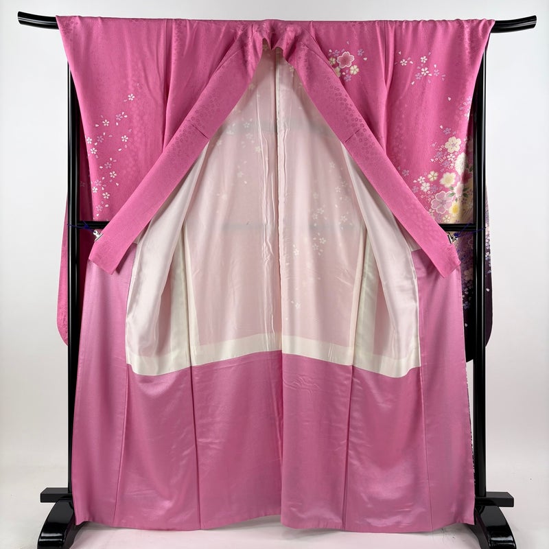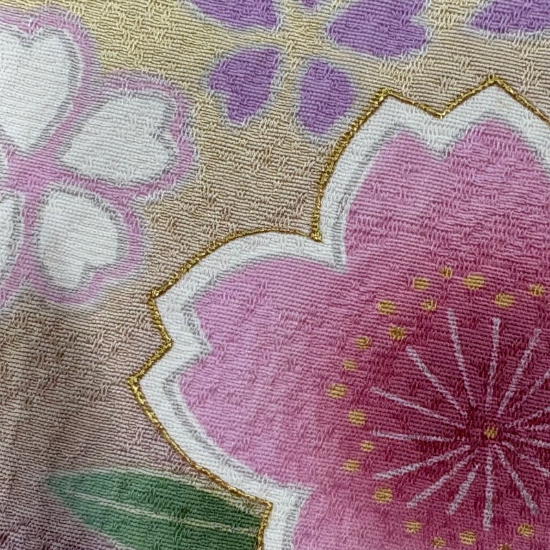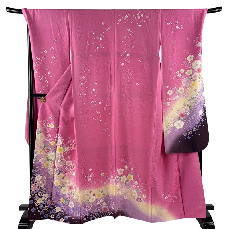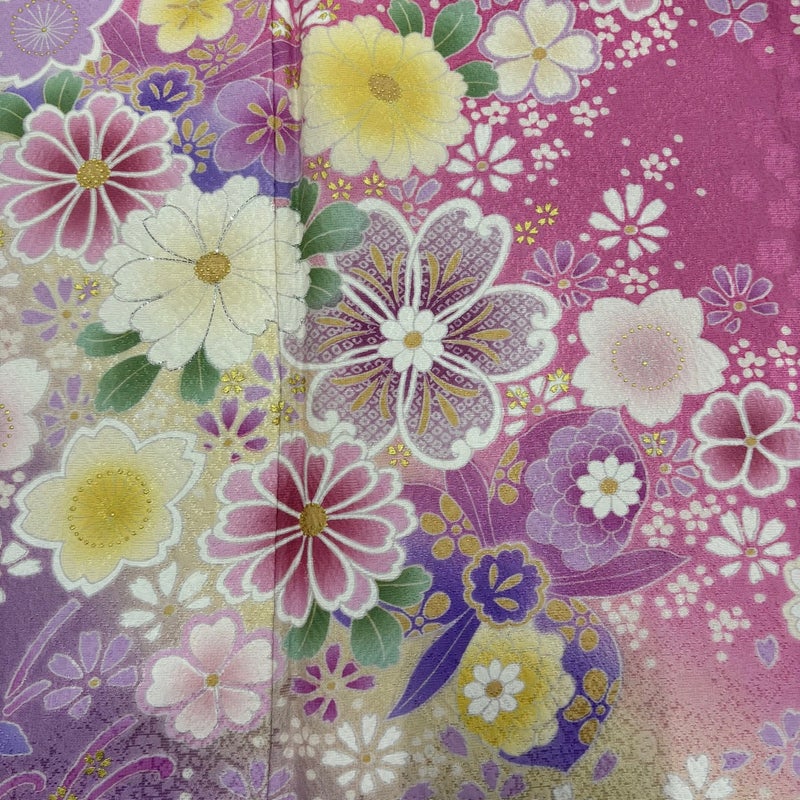 【着物ランク】名品 【素材】正絹 【身丈】約164cm 【裄丈】約71.5cm 【袖丈】約112cm 【袖幅】約36.5cm 【前幅】約28cm 【後幅】約33cm 【サイズ】L 【着物仕立て】袷 【着用時期】10~5月 【状態ランク】ランクB 【着物着用シーン】成人式、謝恩会