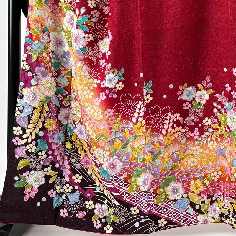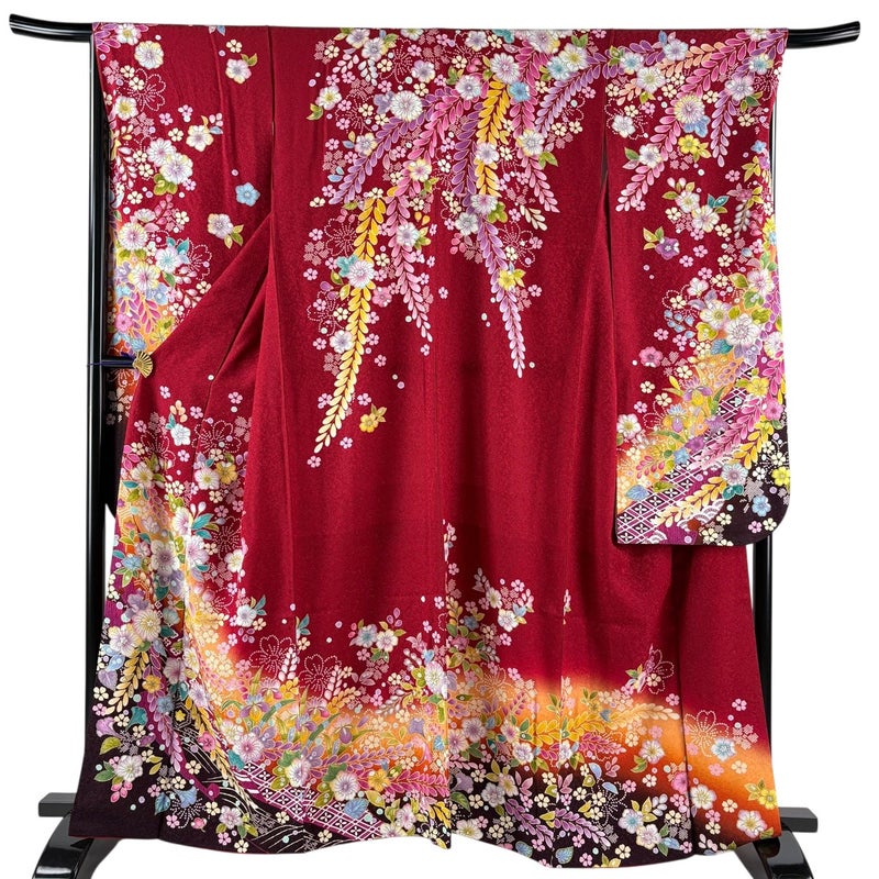 【振袖】 赤系 赤 名品 A 約160cm~約169cm 裄丈67cm-68cm (L)size 袖丈91cm以上 9990-29990 美品 二万以下