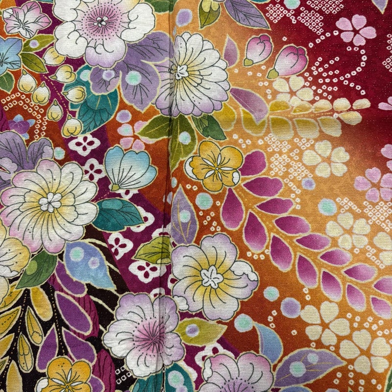 【着物ランク】名品 【素材】正絹 【身丈】約163cm 【裄丈】約68cm 【袖丈】約101.5cm 【袖幅】約33.5cm 【前幅】約29cm 【後幅】約33.5cm 【サイズ】L 【着物仕立て】袷 【着用時期】10~5月 【状態ランク】ランクA 【着物着用シーン】成人式、謝恩会