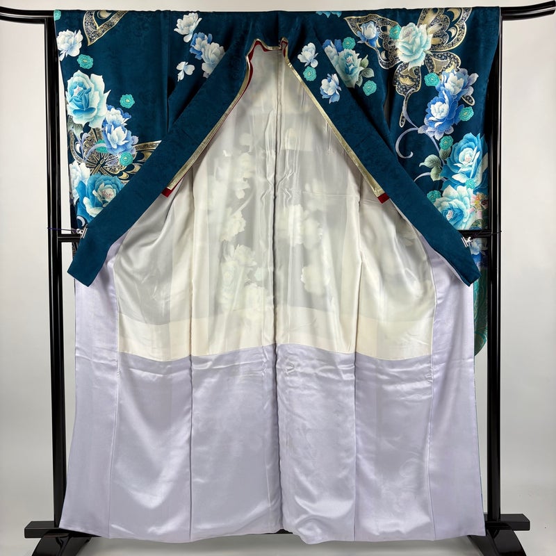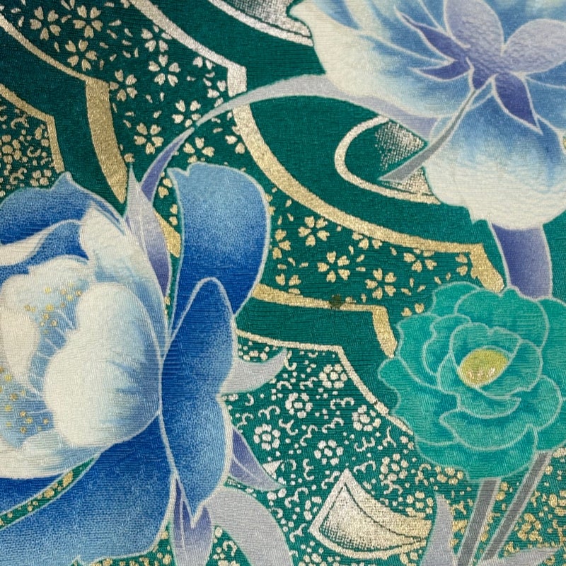 【振袖】 緑系 深緑 名品 B 約150cm~約159cm 裄丈65cm (M)size 袖丈91cm以上 9990-29990 二万以下