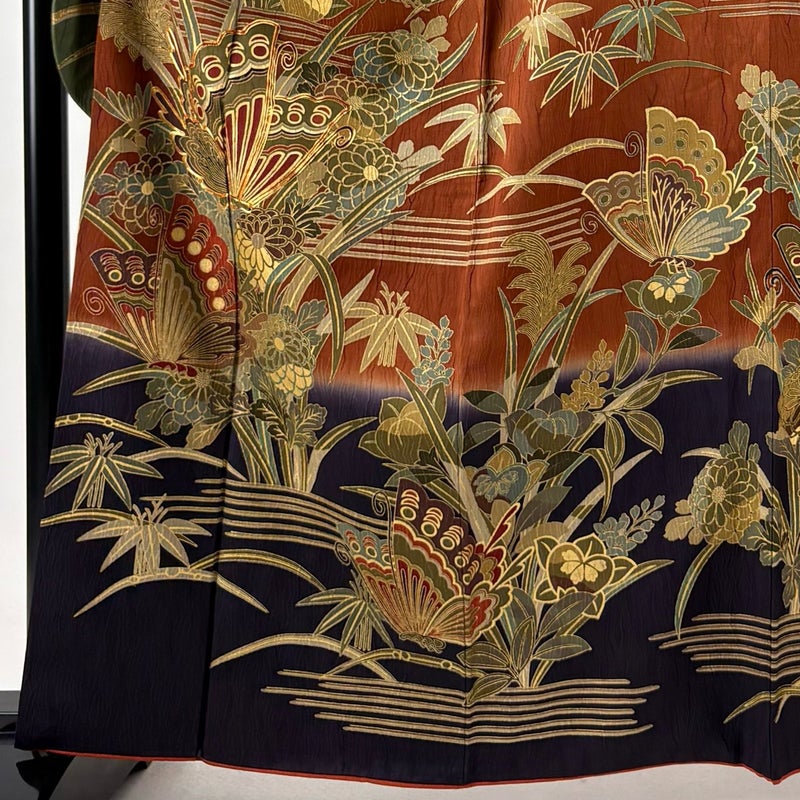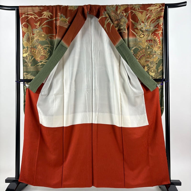 【振袖】 赤系 赤茶 秀品 B 約160cm~約169cm 裄丈63cm-64cm (M)size 袖丈91cm以上 7990-9980 二万以下