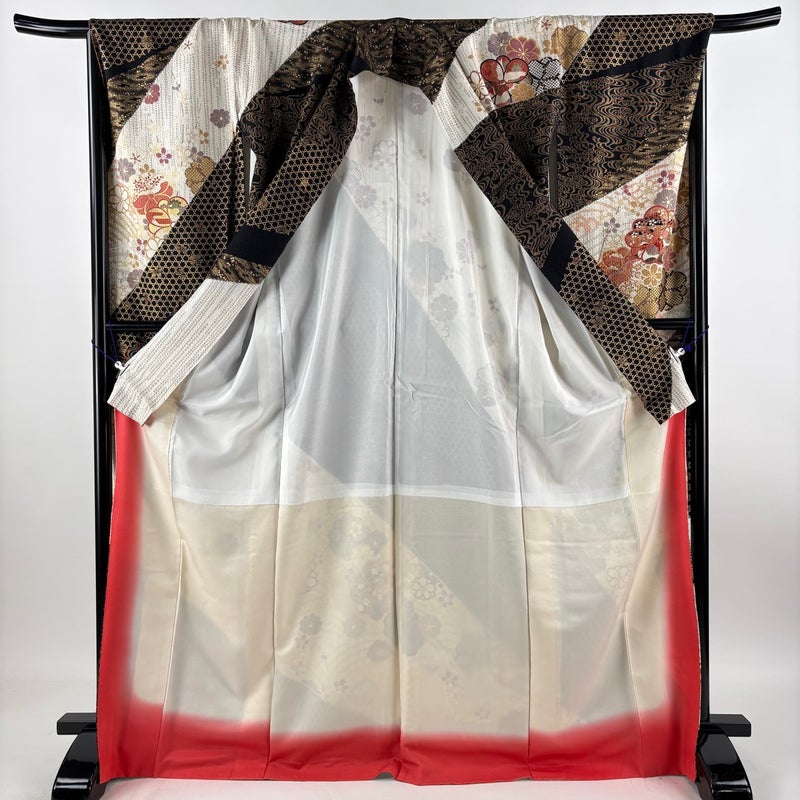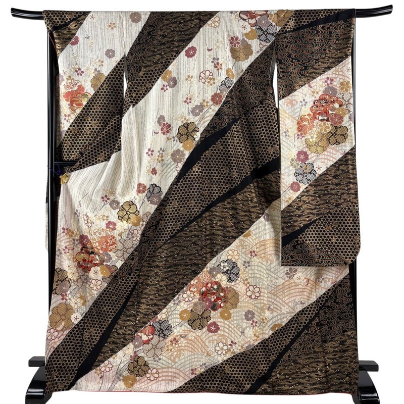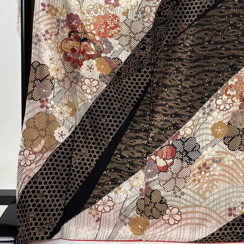 【振袖】 黒系 黒 秀品 C 約170cm~約179cm 裄丈67cm-68cm (L)size 袖丈91cm以上 7990-9980 二万以下