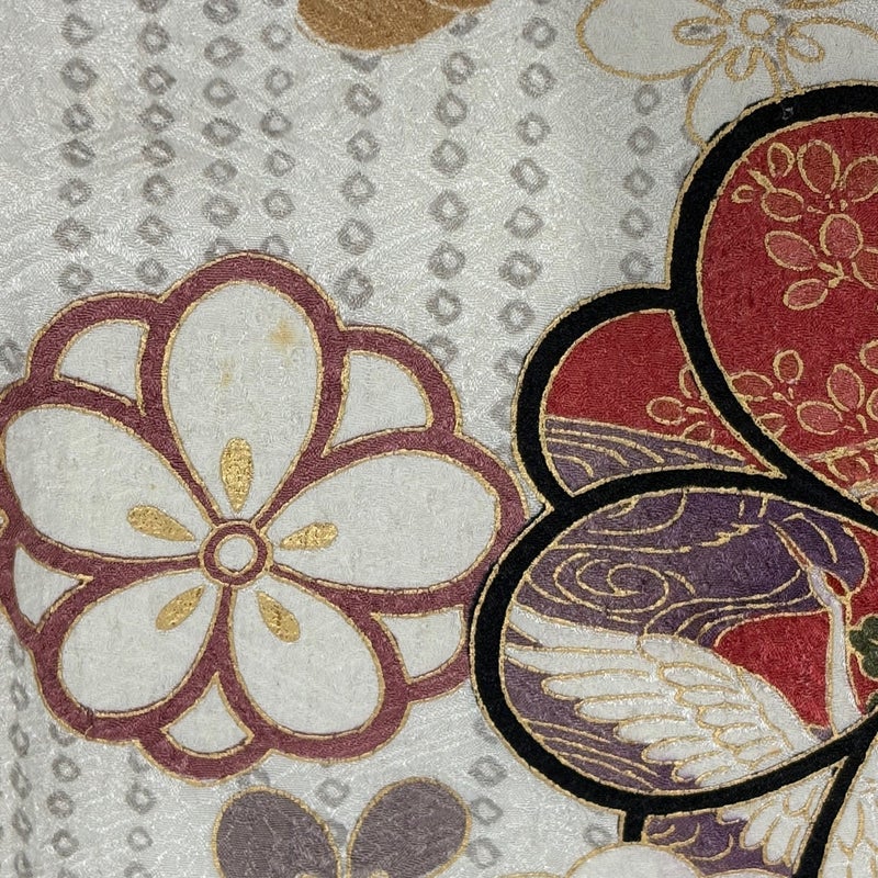 未婚女性の第一礼装としてお使いいただける振袖でございます。 お好みの帯や小物と合わせて晴れの日に相応しい華やかな装いにいかがでしょうか。 ※身丈・裄丈の縫込みの長さは測っておりません。 表地所々にシミ、衿周りや両袖口中に汚れ、表地所々に金彩の剥がれ、表地所々に金彩の変色、右前袖付けと左後袖付けに補修跡がございます。 八掛裾部分に生地の傷み、胴裏所々にシミがございます。 ご購入の際はその点ご留意ください。 ※なお、厳しく商品の状態確認を行っておりますが、記載の汚れ以外にも見落とし箇所がある可能性がある旨ご了承いただけますと幸いです。 沢山の商品の中からご覧いただき誠にありがとうございます。 ※保管によるにおい移りがございます。