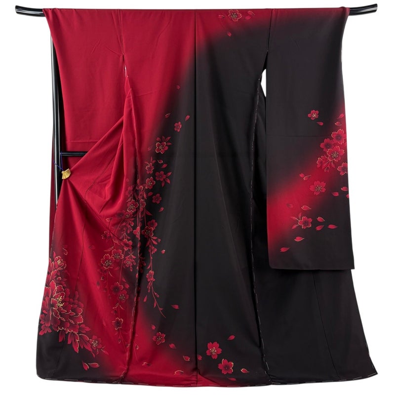 【振袖】 赤系 赤 秀品 B 約180cm~約189cm 裄丈69cm以上 袖丈91cm以上 7990-9980 二万以下