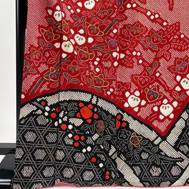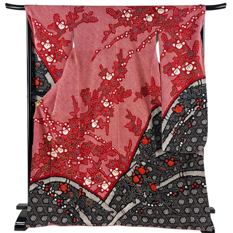 【振袖】 赤系 赤 秀品 C 約170cm~約179cm 裄丈67cm-68cm (L)size 袖丈91cm以上 7990-9980 二万以下