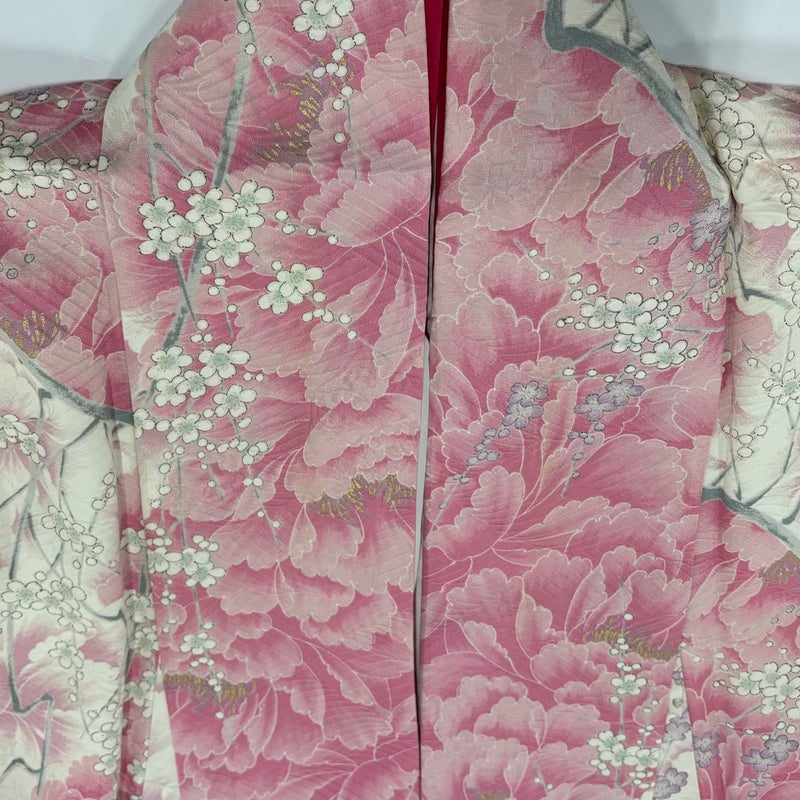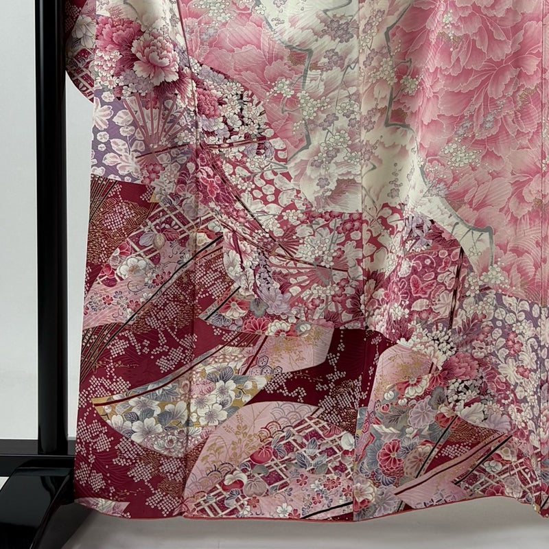 【振袖】 赤系 ピンク 秀品 B 約160cm~約169cm 裄丈66cm (M)size 袖丈91cm以上 7990-9980 二万以下