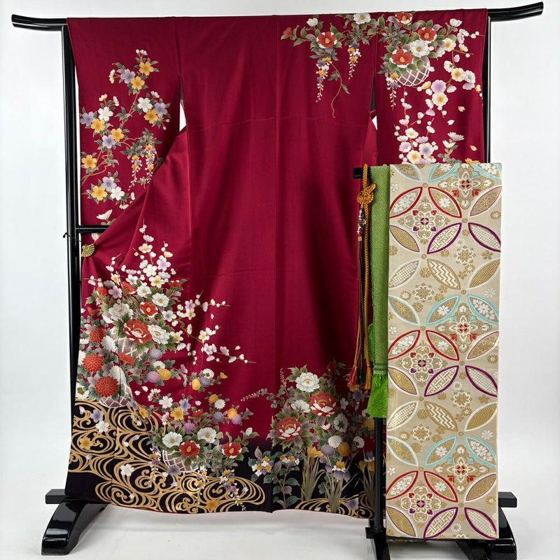 【振袖】 赤系 赤 秀品 B 約160cm~約169cm 裄丈65cm (M)size 袖丈91cm以上 9990-29990 五万以下