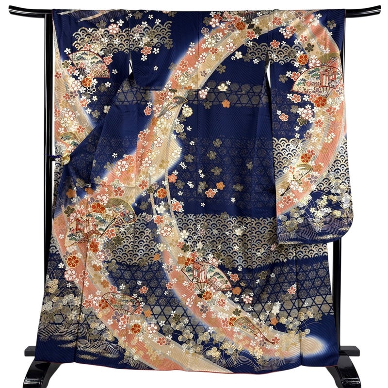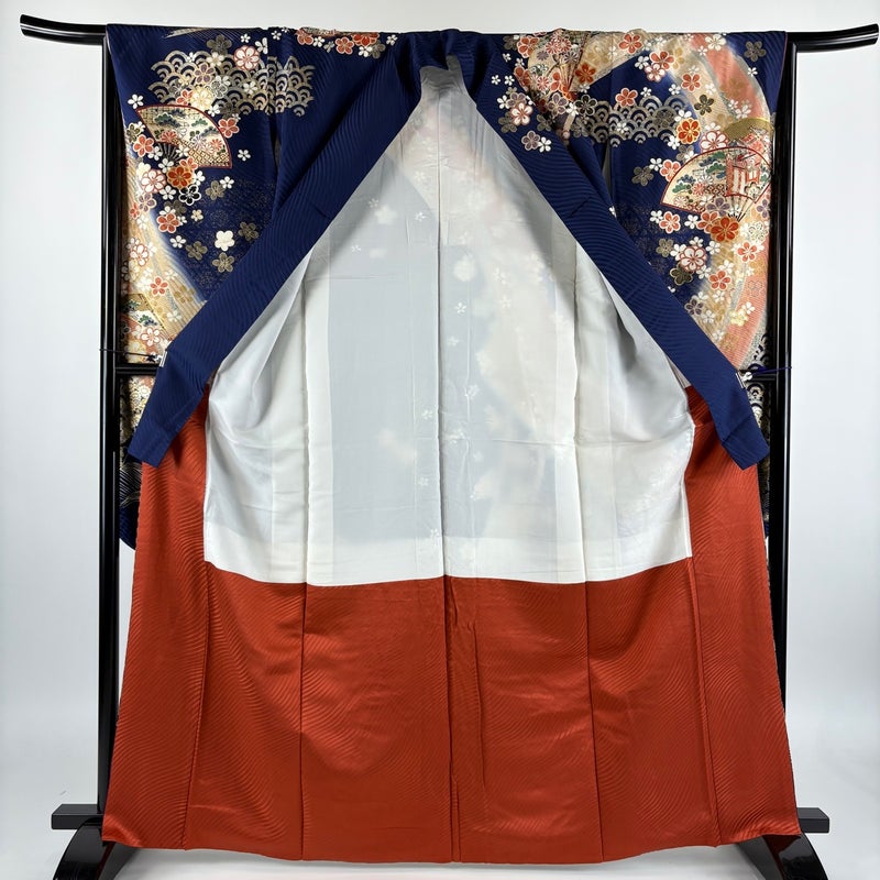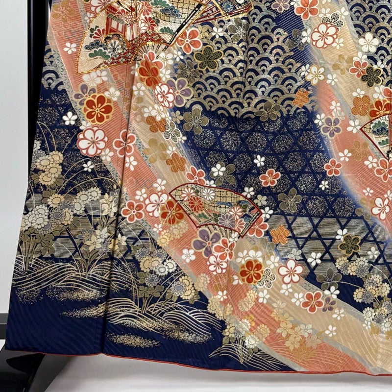 【振袖】 青系 紺色 秀品 C 約160cm~約169cm 裄丈65cm (M)size 袖丈91cm以上 7990-9980 二万以下