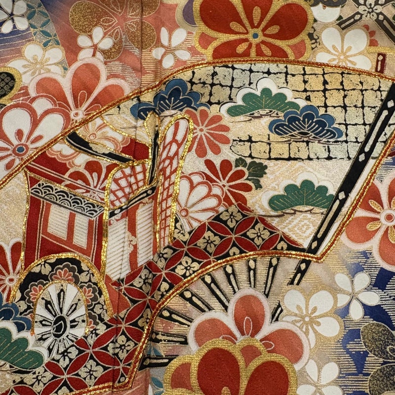 【着物ランク】秀品 【素材】正絹 【身丈】約164.5cm 【裄丈】約65cm 【袖丈】約106cm 【袖幅】約34cm 【前幅】約24cm 【後幅】約30cm 【サイズ】M 【着物仕立て】袷 【着用時期】10~5月 【状態ランク】ランクC 【着物着用シーン】成人式、謝恩会