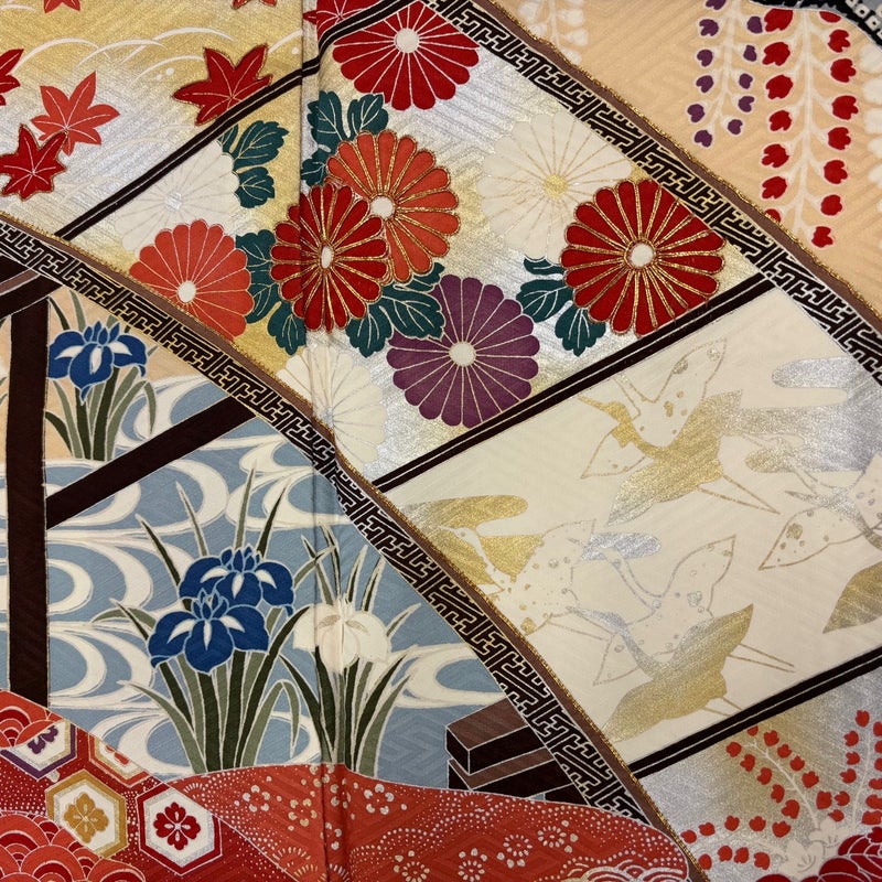 【着物ランク】秀品 【素材】正絹 【身丈】約167cm 【裄丈】約66cm 【袖丈】約113cm 【袖幅】約34cm 【前幅】約26cm 【後幅】約30cm 【サイズ】M 【着物仕立て】袷 【着用時期】10~5月 【状態ランク】ランクA 【着物着用シーン】成人式、謝恩会