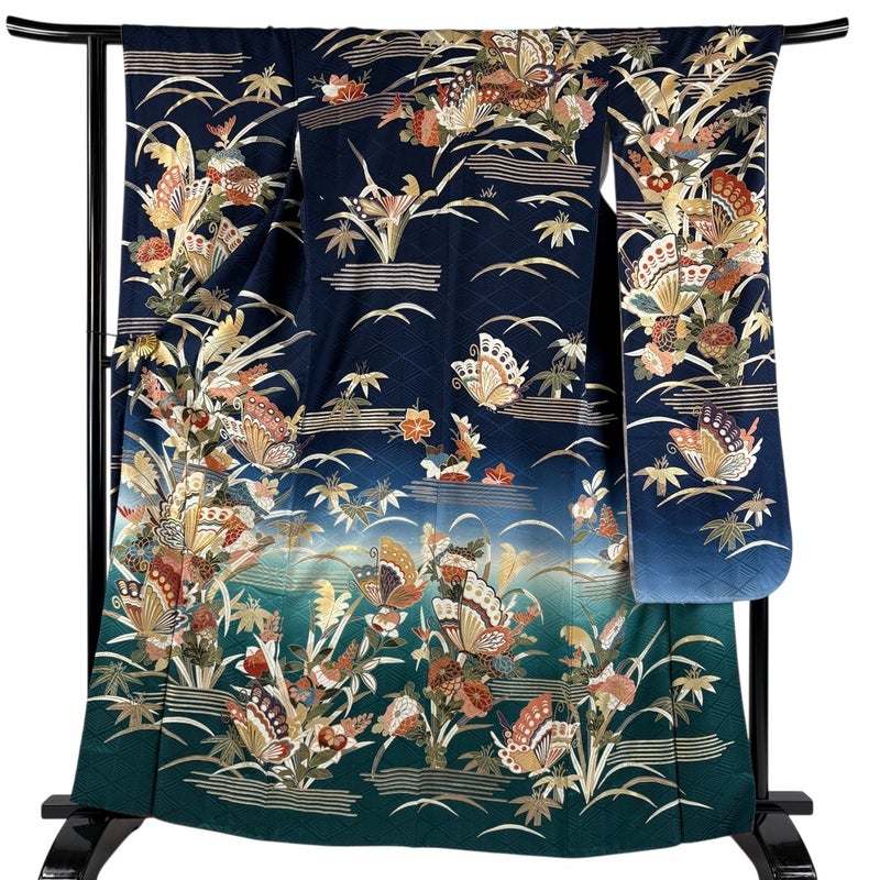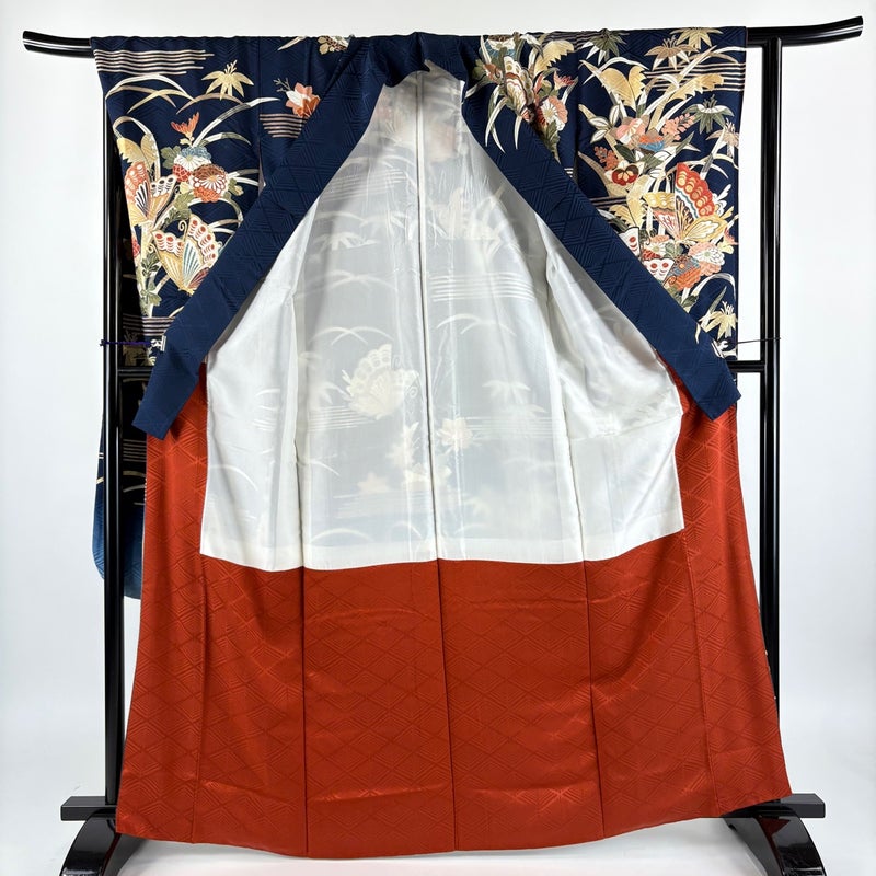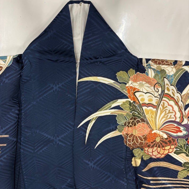【振袖】 青系 紺色 秀品 A 約160cm~約169cm 裄丈65cm (M)size 袖丈91cm以上 9990-29990 美品 二万以下