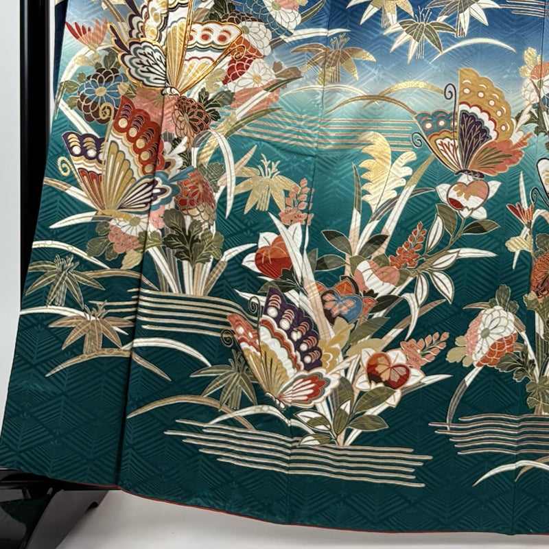 【着物ランク】秀品 【素材】正絹 【身丈】約165cm 【裄丈】約65.5cm 【袖丈】約115.5cm 【袖幅】約34.5cm 【前幅】約23.5cm 【後幅】約29.5cm 【サイズ】M 【着物仕立て】袷 【着用時期】10~5月 【状態ランク】ランクA 【着物着用シーン】成人式、謝恩会