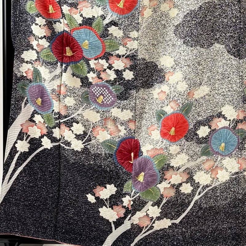 【着物ランク】秀品 【素材】正絹 【身丈】約161cm 【裄丈】約64.5cm 【袖丈】約108.5cm 【袖幅】約33.5cm 【前幅】約23cm 【後幅】約30.5cm 【サイズ】M 【着物仕立て】袷 【着用時期】10~5月 【状態ランク】ランクA 【着物着用シーン】成人式、謝恩会