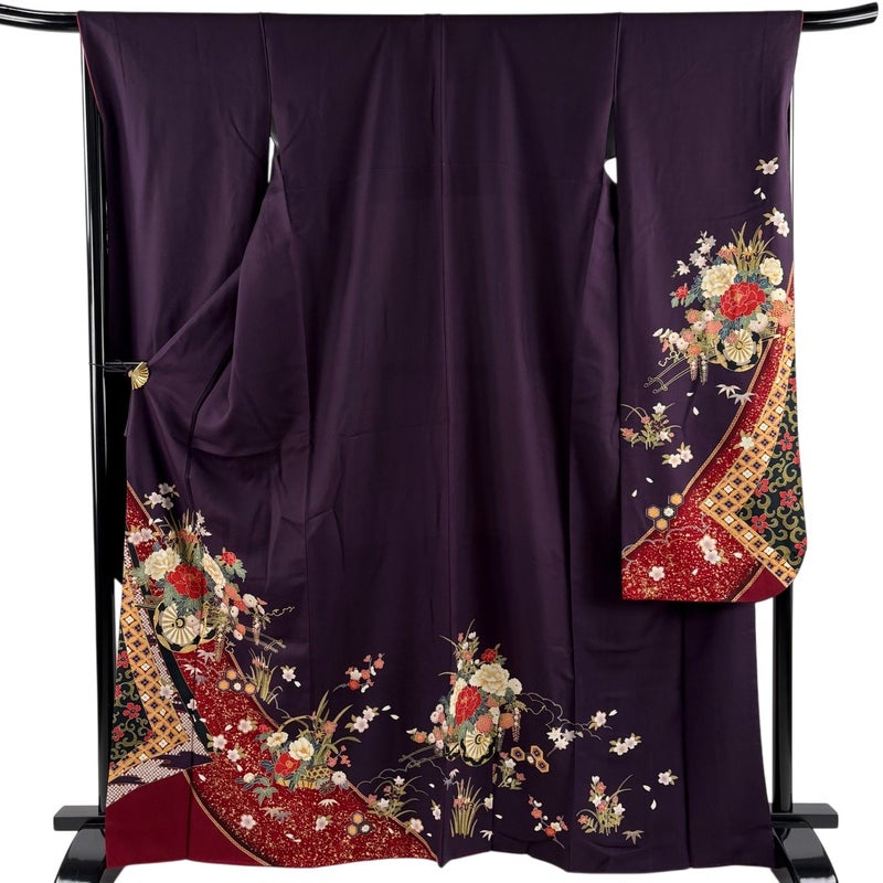 【振袖】 紫系 濃紫 秀品 B 約160cm~約169cm 裄丈67cm-68cm (L)size 袖丈91cm以上 7990-9980 二万以下