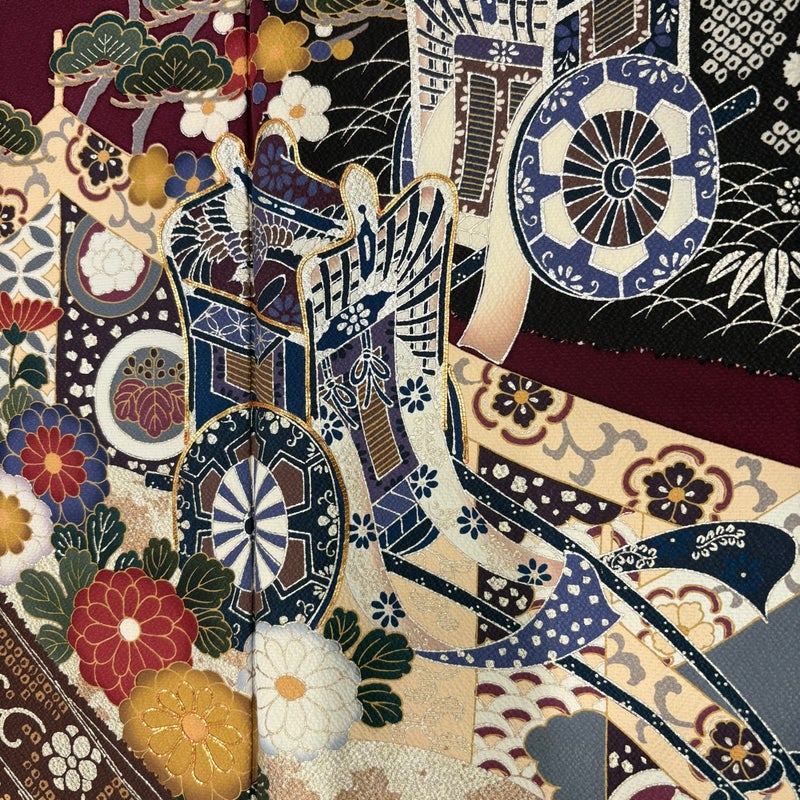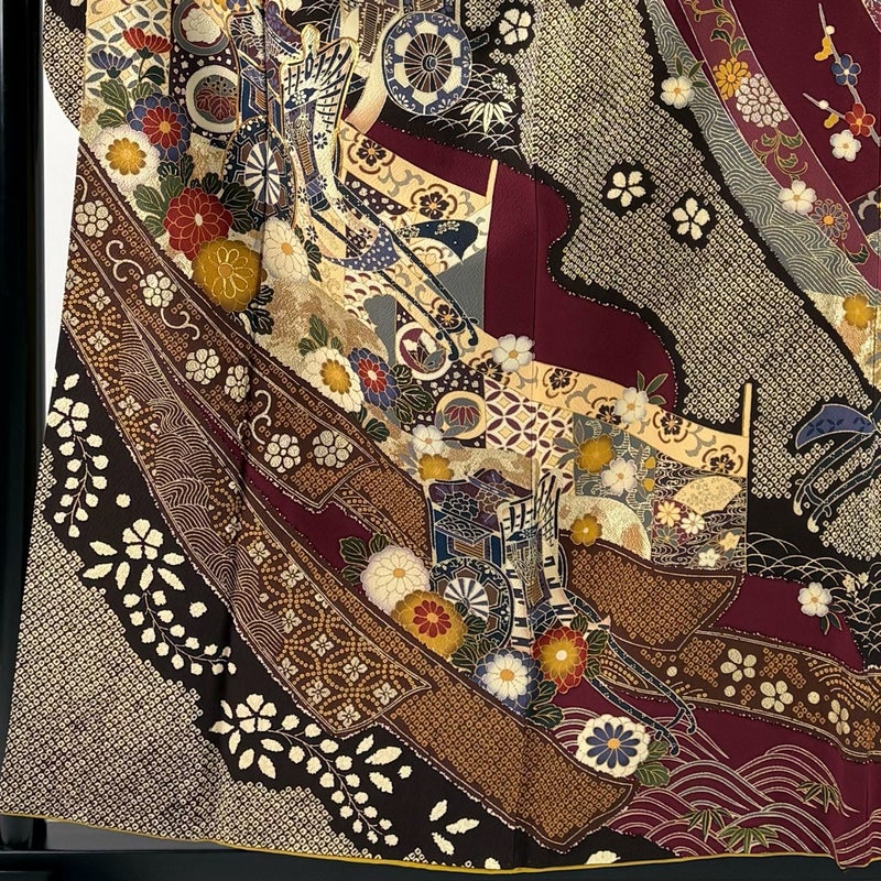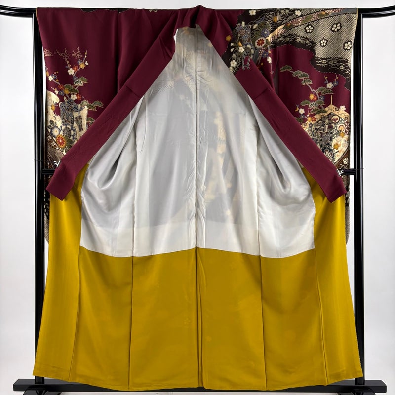 【着物ランク】秀品 【素材】正絹 【身丈】約157.5cm 【裄丈】約64cm 【袖丈】約101cm 【袖幅】約33cm 【前幅】約23cm 【後幅】約28cm 【サイズ】M 【着物仕立て】袷 【着用時期】10~5月 【状態ランク】ランクB 【着物着用シーン】成人式、謝恩会