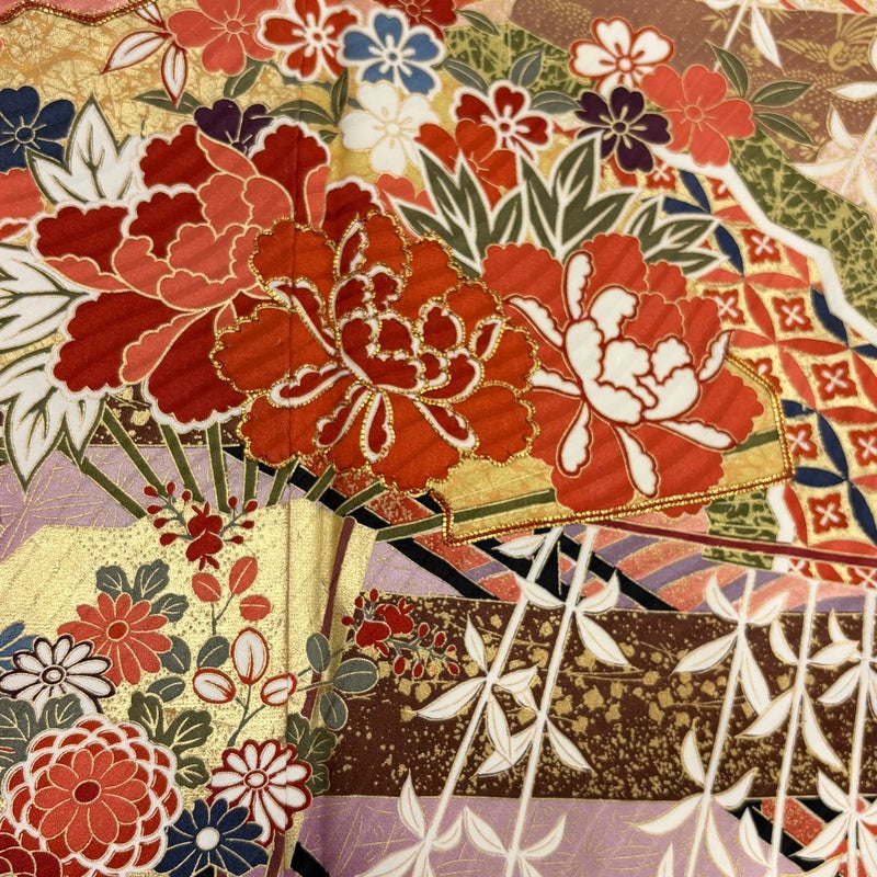 【着物ランク】秀品 【素材】正絹 【身丈】約161cm 【裄丈】約65cm 【袖丈】約112.5cm 【袖幅】約33.5cm 【前幅】約23.5cm 【後幅】約29cm 【サイズ】M 【着物仕立て】袷 【着用時期】10~5月 【状態ランク】ランクB 【着物着用シーン】成人式、謝恩会