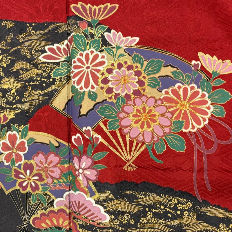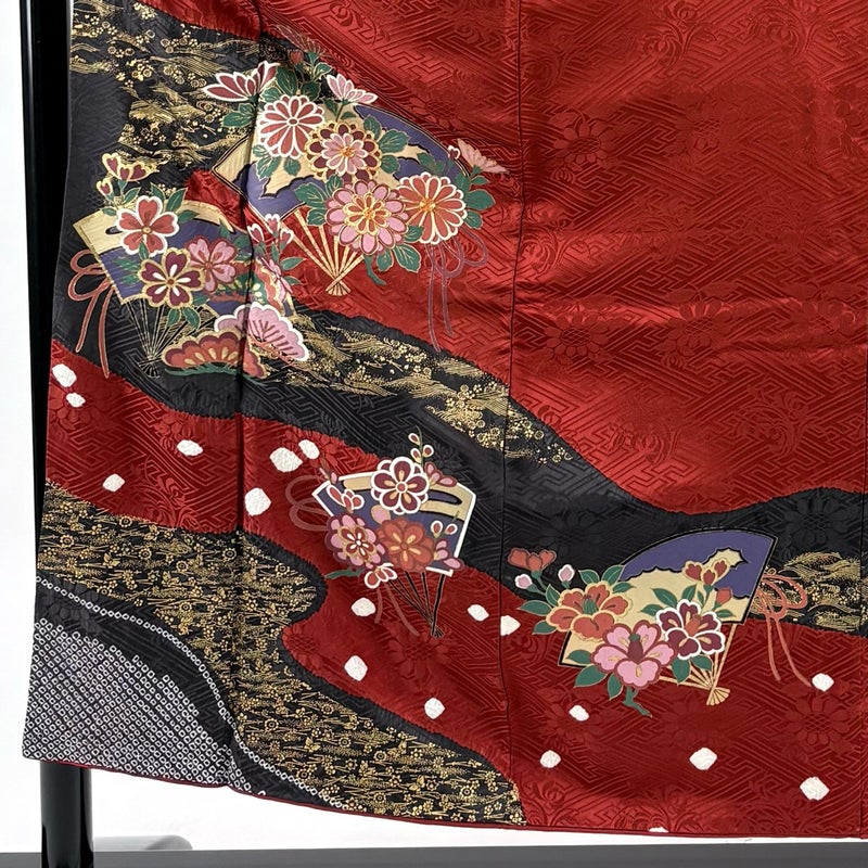 【振袖】 赤系 赤 秀品 B 約150cm~約159cm 裄丈62cm以下 (S)size 袖丈91cm以上 7990-9980 二万以下