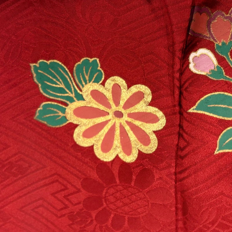 【着物ランク】秀品 【素材】正絹 【身丈】約154.5cm 【裄丈】約62cm 【袖丈】約100cm 【袖幅】約33cm 【前幅】約22cm 【後幅】約27.5cm 【サイズ】S 【着物仕立て】袷 【着用時期】10~5月 【状態ランク】ランクB 【着物着用シーン】成人式、謝恩会
