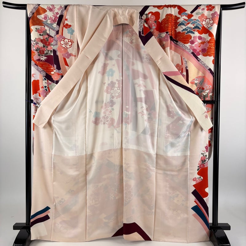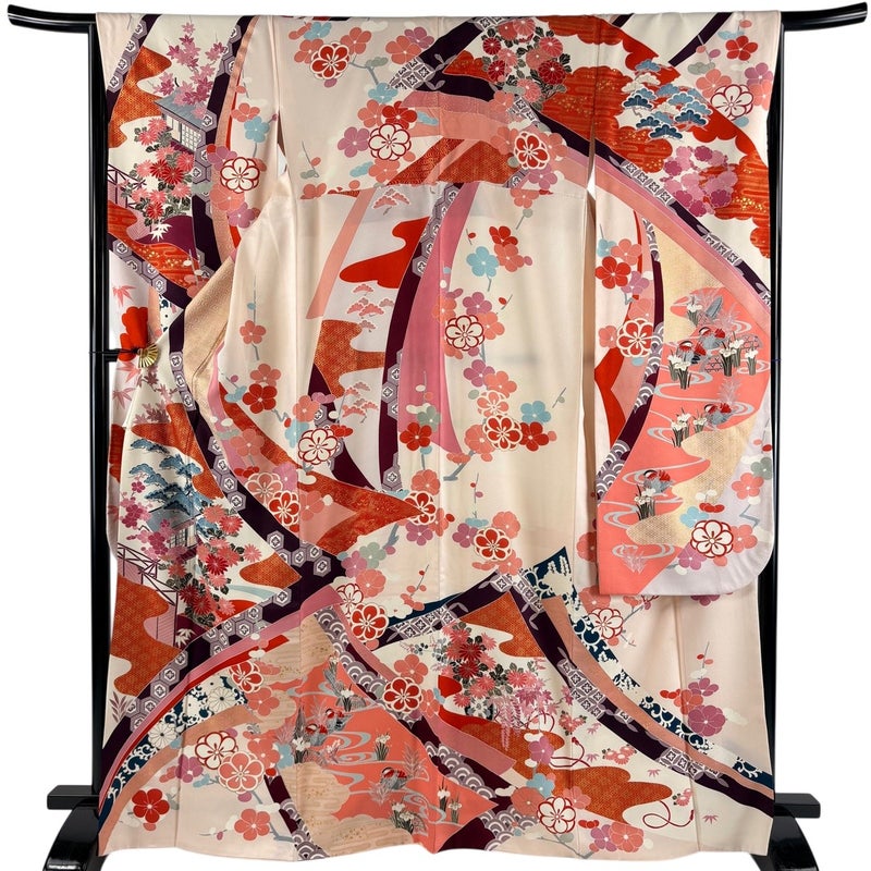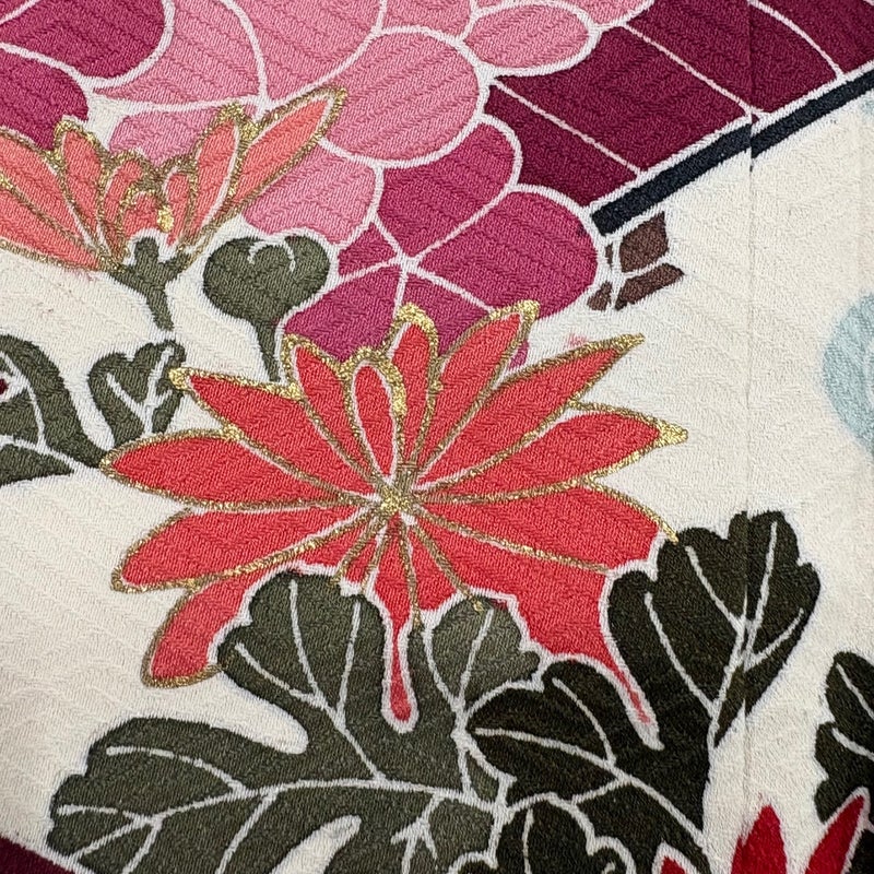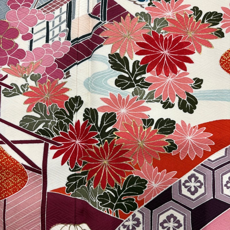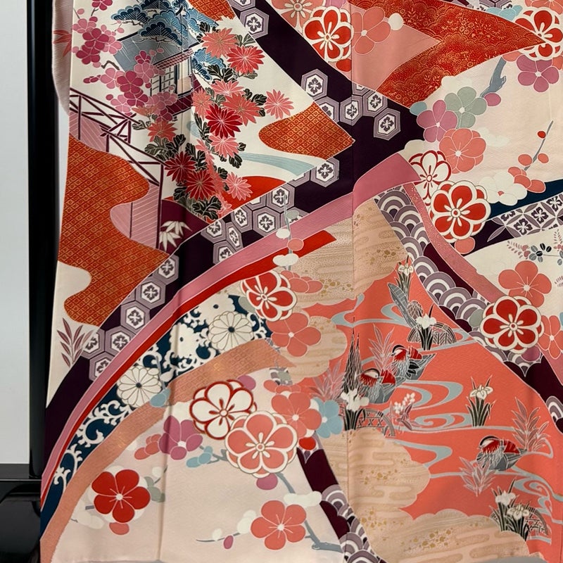 【着物ランク】秀品 【素材】正絹 【身丈】約165cm 【裄丈】約65.5cm 【袖丈】約113.5cm 【袖幅】約33.5cm 【前幅】約24.5cm 【後幅】約30.5cm 【サイズ】M 【着物仕立て】袷 【着用時期】10~5月 【状態ランク】ランクB 【着物着用シーン】成人式、謝恩会