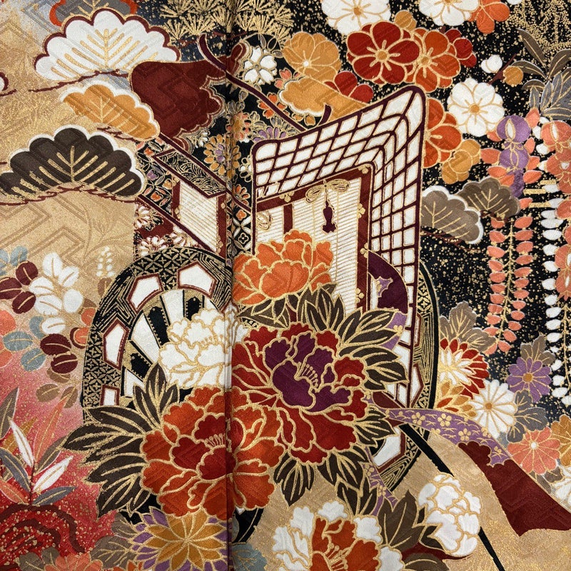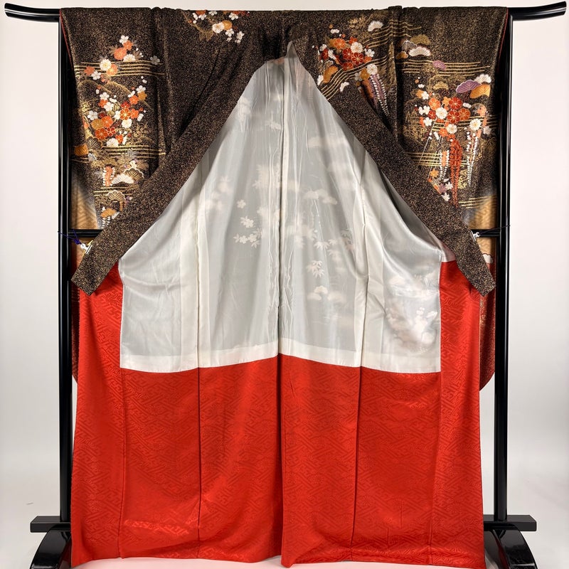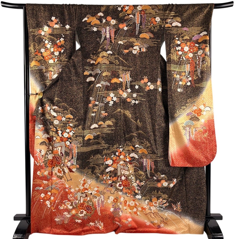 【振袖】 黒系 黒 秀品 B 約170cm~約179cm 裄丈67cm-68cm (M)size 袖丈91cm以上 7990-9980 二万以下
