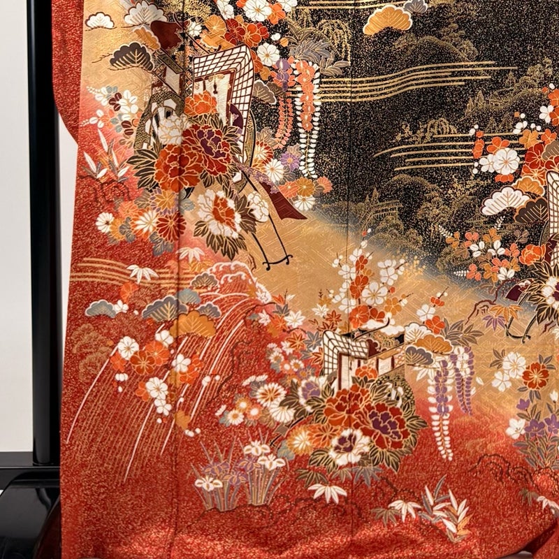 【着物ランク】秀品 【素材】正絹 【身丈】約170cm 【裄丈】約67cm 【袖丈】約118cm 【袖幅】約35.5cm 【前幅】約24cm 【後幅】約29cm 【サイズ】M 【着物仕立て】袷 【着用時期】10~5月 【状態ランク】ランクB 【着物着用シーン】成人式、謝恩会