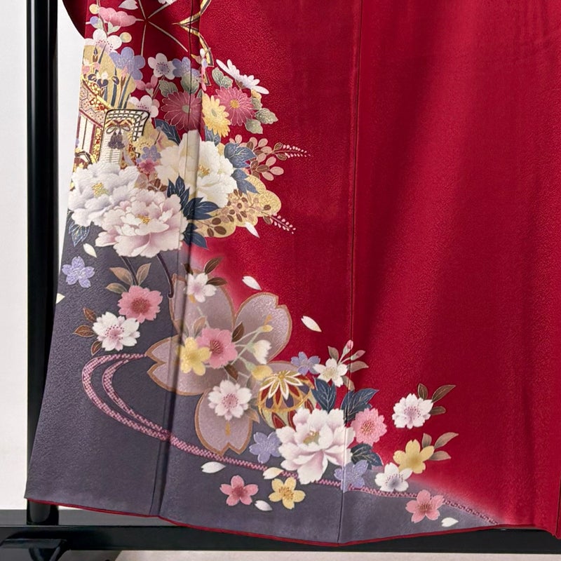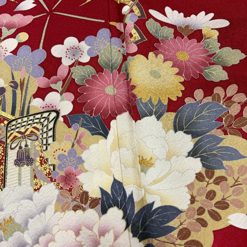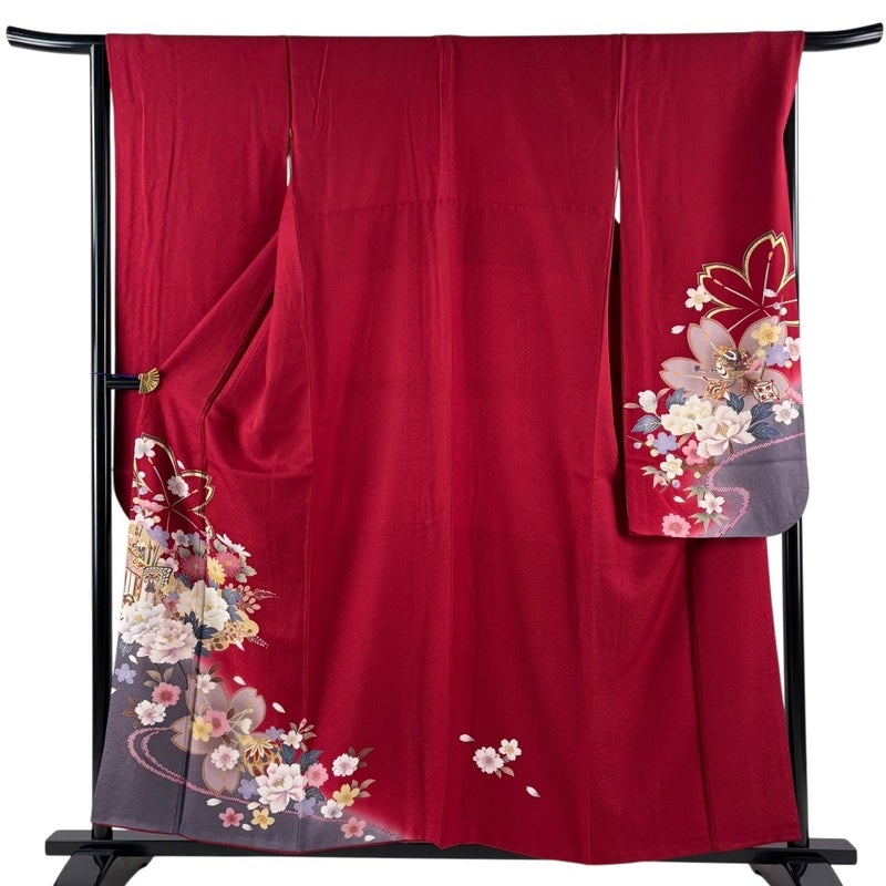 【振袖】 赤系 赤 秀品 A 約150cm~約159cm 裄丈65cm (M)size 袖丈91cm以上 9990-29990 美品 二万以下