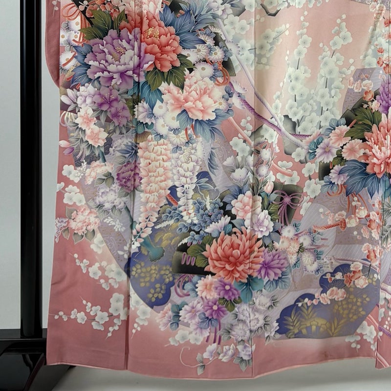 【振袖】 赤系 ピンク 秀品 B 約160cm~約169cm 裄丈65cm (M)size 袖丈91cm以上 7990-9980 二万以下