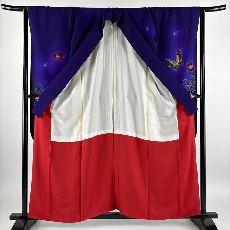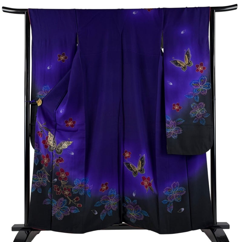 【着物ランク】秀品 【素材】正絹 【身丈】約158.5cm 【裄丈】約65.5cm 【袖丈】約104.5cm 【袖幅】約33cm 【前幅】約23.5cm 【後幅】約30cm 【サイズ】M 【着物仕立て】袷 【着用時期】10~5月 【状態ランク】ランクB 【着物着用シーン】成人式、謝恩会