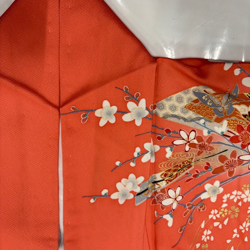 【振袖】 赤系 サーモンピンク 秀品 B 約160cm~約169cm 裄丈66cm (M)size 袖丈91cm以上 7990-9980 二万以下