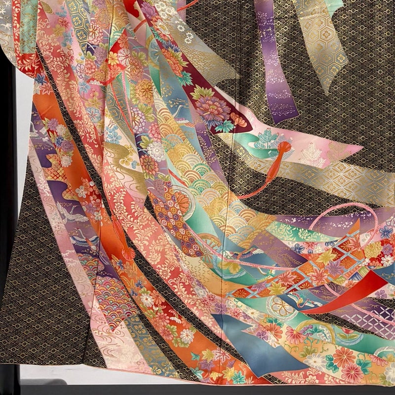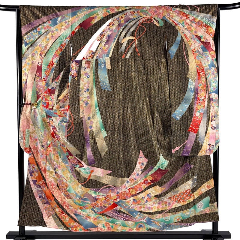 【着物ランク】秀品 【素材】正絹 【身丈】約153cm 【裄丈】約64.5cm 【袖丈】約102cm 【袖幅】約34cm 【前幅】約24cm 【後幅】約30cm 【サイズ】M 【着物仕立て】袷 【着用時期】10~5月 【状態ランク】ランクC 【着物着用シーン】成人式、謝恩会