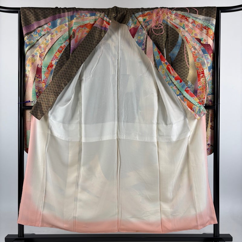 【振袖】 金・銀系 金茶 秀品 C 約150cm~約159cm 裄丈63cm-64cm (M)size 袖丈91cm以上 7990-9980 二万以下