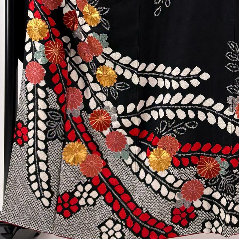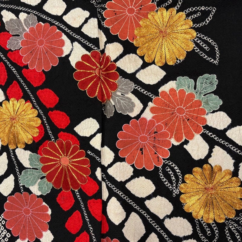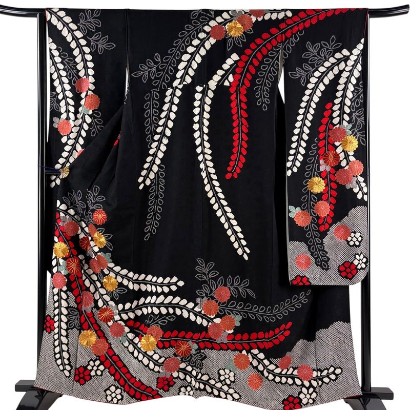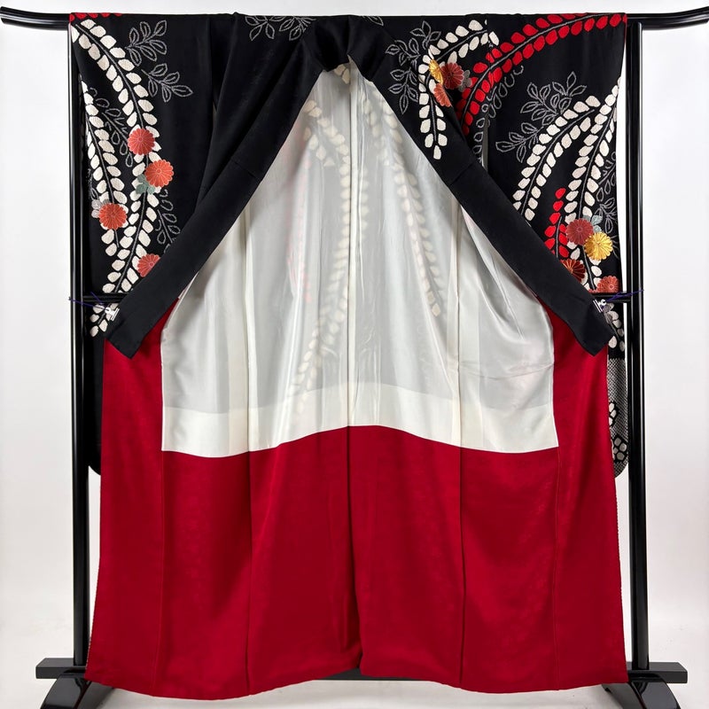 【振袖】 黒系 黒 秀品 C 約160cm~約169cm 裄丈65cm (M)size 袖丈91cm以上 7990-9980 二万以下