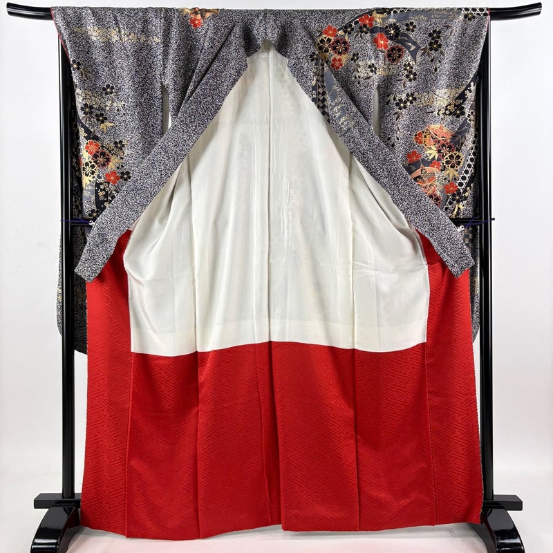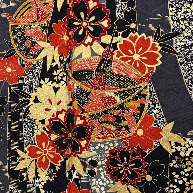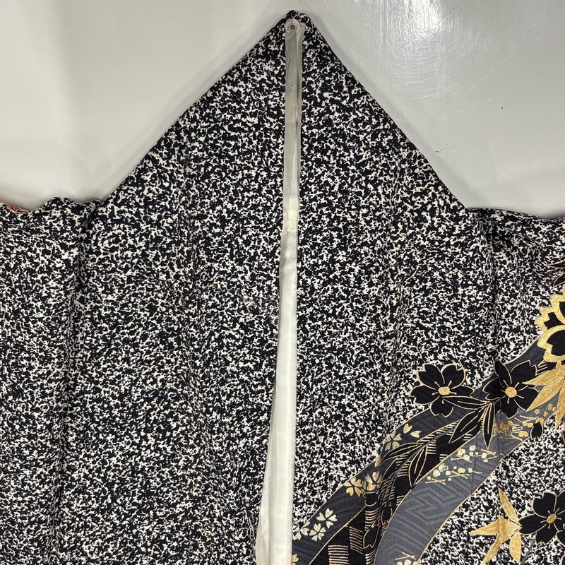【振袖】 黒系 黒 秀品 C 約160cm~約169cm 裄丈67cm-68cm (M)size 袖丈91cm以上 7990-9980 二万以下