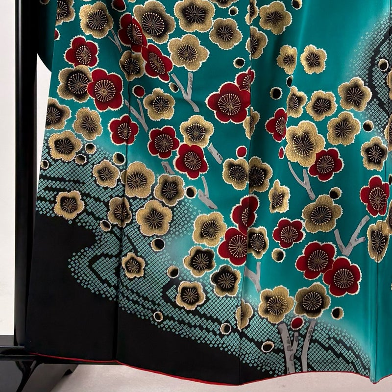 【振袖】 緑系 緑 秀品 B 約160cm~約169cm 裄丈65cm (M)size 袖丈91cm以上 7990-9980 二万以下