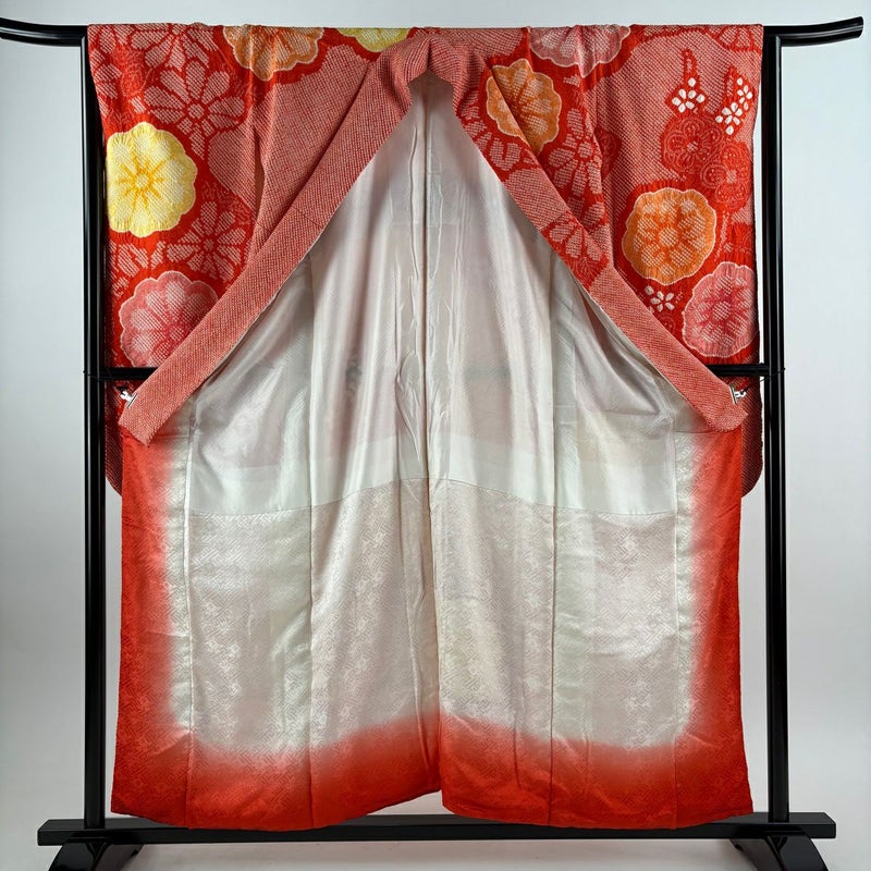 【振袖】 赤系 赤 秀品 C 約150cm~約159cm 裄丈66cm (M)size 袖丈91cm以上 7990-9980 二万以下