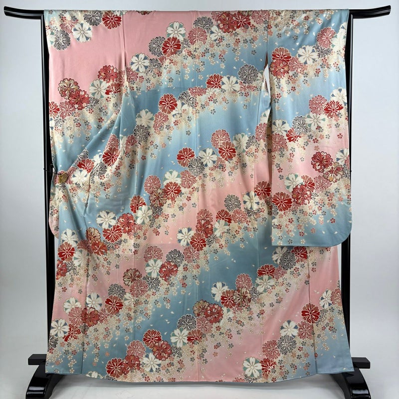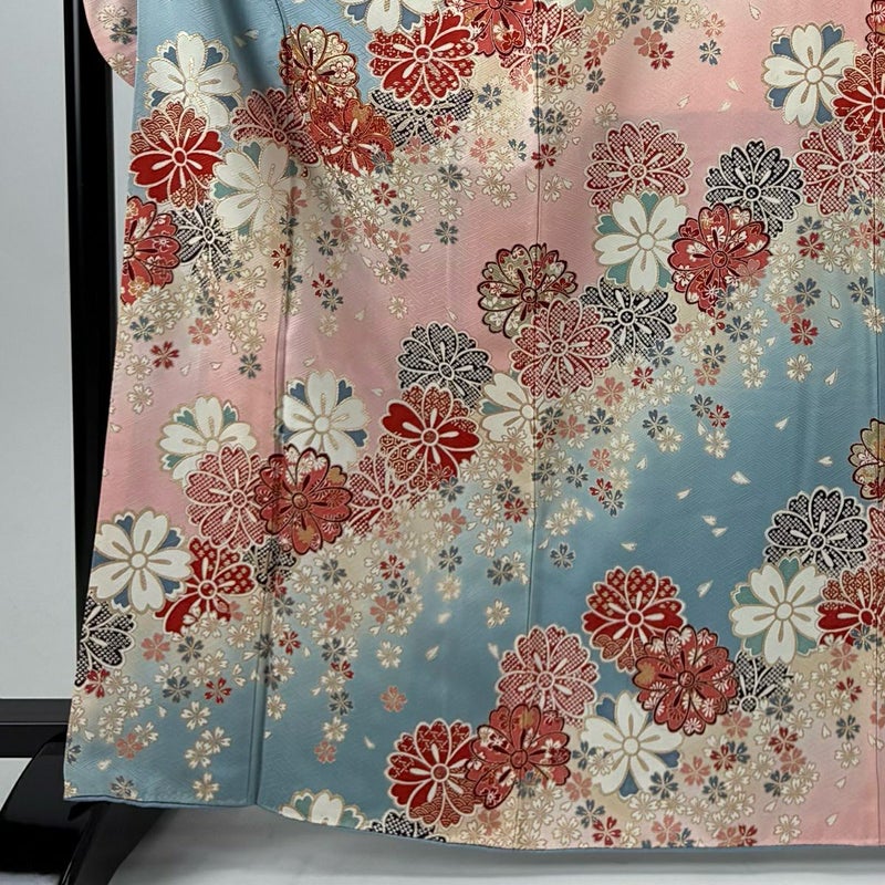【振袖】 青系 水色 秀品 B 約160cm~約169cm 裄丈65cm (M)size 袖丈91cm以上 7990-9980 二万以下
