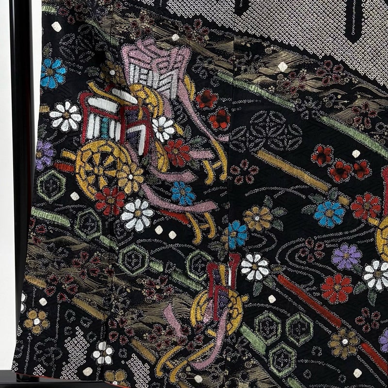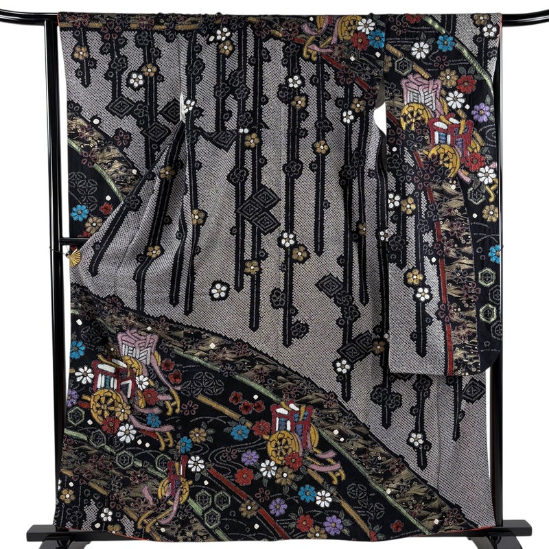 【振袖】 黒系 黒 名品 C 約160cm~約169cm 裄丈65cm (M)size 袖丈91cm以上 9990-29990 二万以下