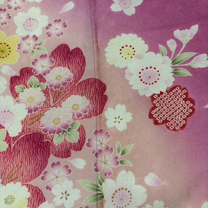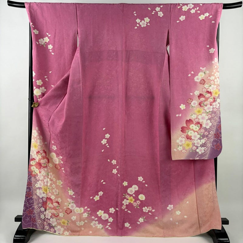 【振袖】 赤系 ピンク 名品 B 約170cm~約179cm 裄丈69cm以上 (L)size 袖丈91cm以上 9990-29990 二万以下