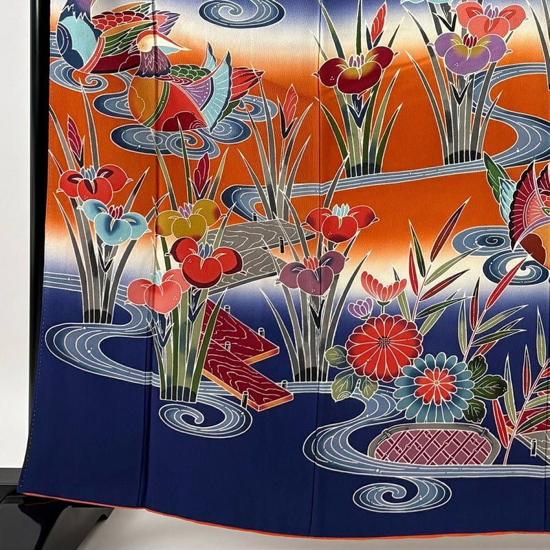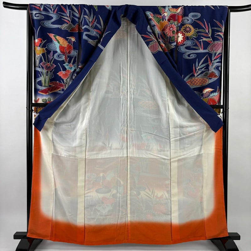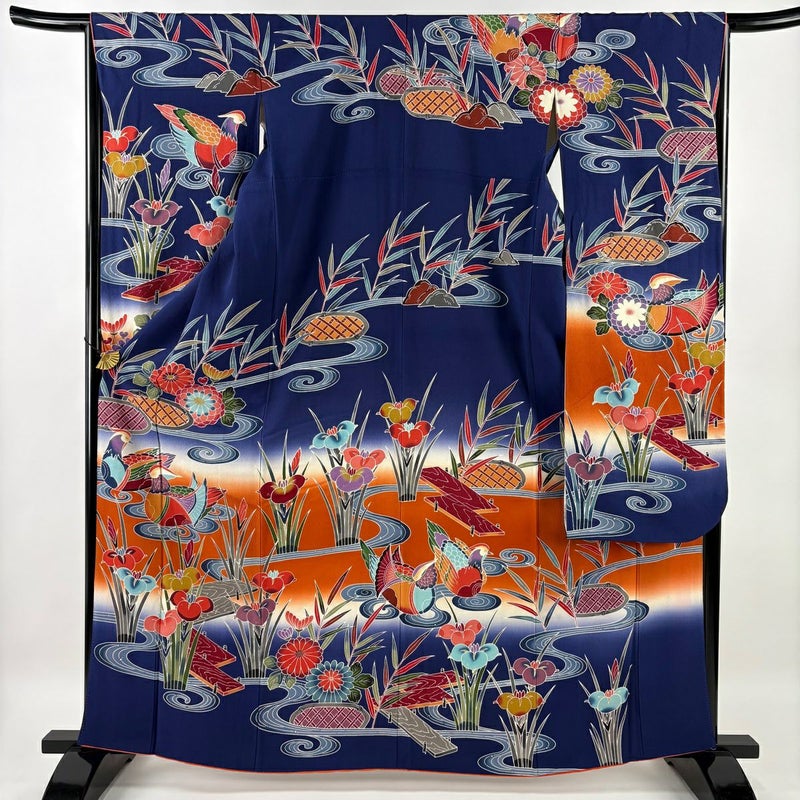 【振袖】 青系 紺色 名品 A 約160cm~約169cm 裄丈65cm (M)size 袖丈91cm以上 9990-29990 美品 二万以下