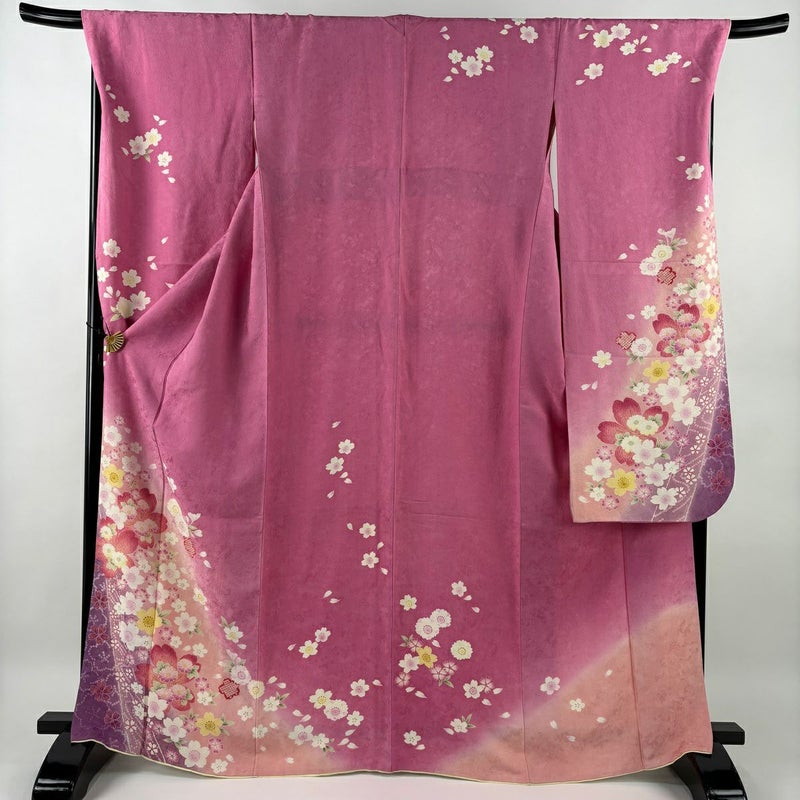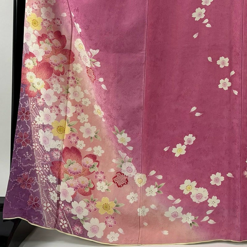 【振袖】 赤系 ピンク 名品 B 約160cm~約169cm 裄丈69cm以上 (L)size 袖丈91cm以上 9990-29990 二万以下