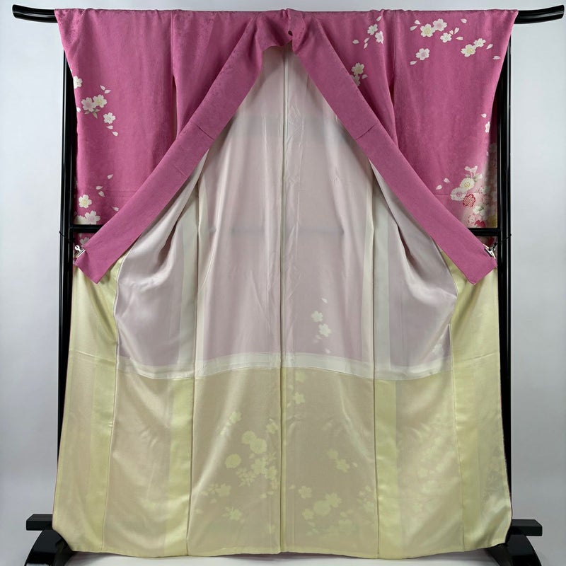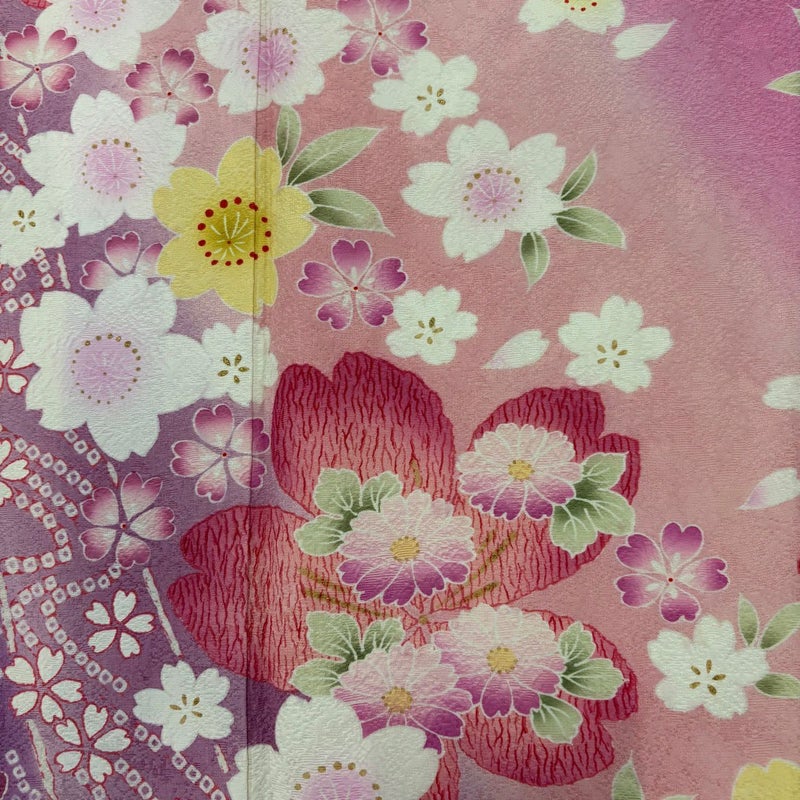 【着物ランク】名品 【素材】正絹 【身丈】約167cm 【裄丈】約70.5cm 【袖丈】約111cm 【袖幅】約36.5cm 【前幅】約25.5cm 【後幅】約29.5cm 【サイズ】L 【着物仕立て】袷 【着用時期】10~5月 【状態ランク】ランクB 【着物着用シーン】成人式、謝恩会