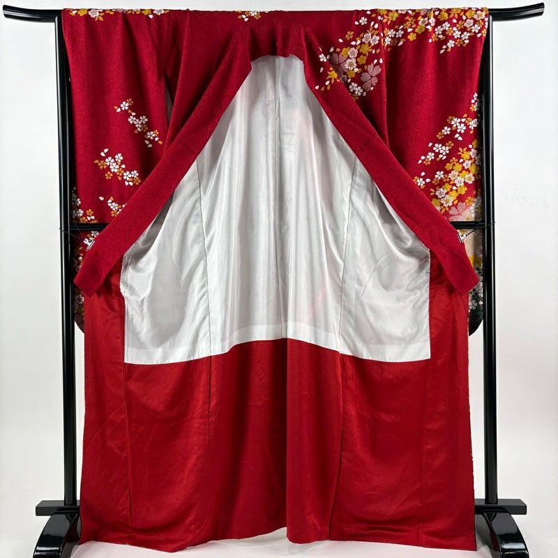 【振袖】 赤系 赤 名品 B 約160cm~約169cm 裄丈67cm-68cm (M)size 袖丈91cm以上 9990-29990 二万以下