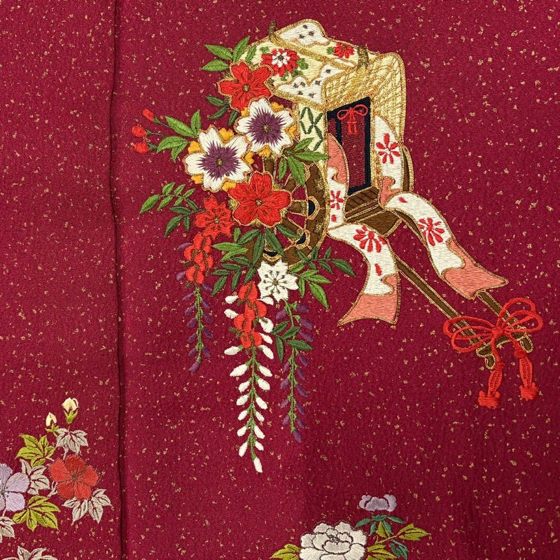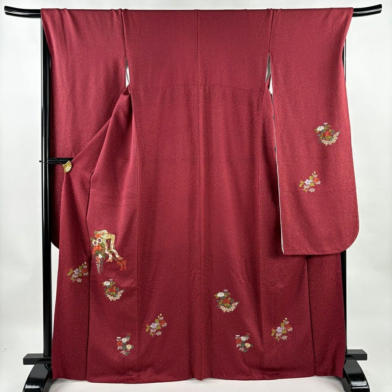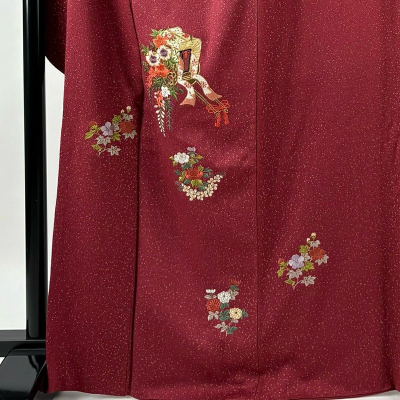 【振袖】 赤系 えんじ色 秀品 C 約160cm~約169cm 裄丈67cm-68cm (L)size 袖丈91cm以上 7990-9980 二万以下