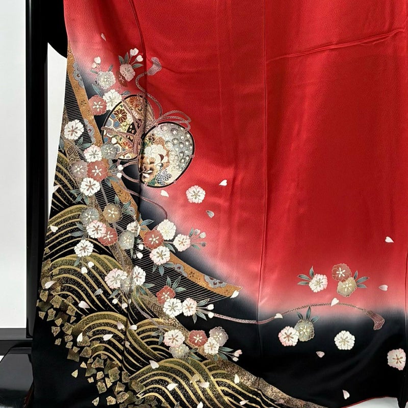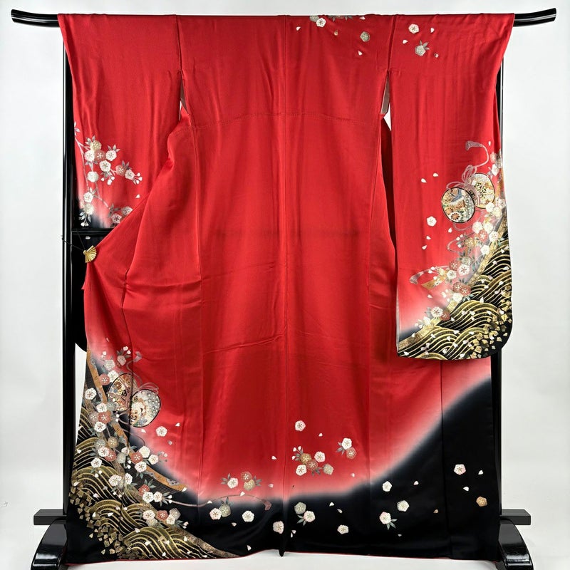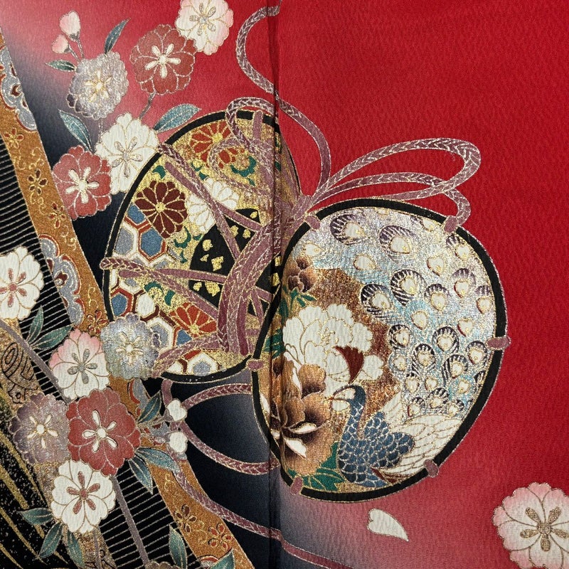【振袖】 赤系 赤 秀品 B 約170cm~約179cm 裄丈69cm以上 (L)size 袖丈91cm以上 7990-9980 二万以下