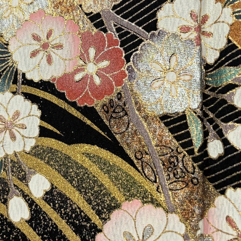 【着物ランク】秀品 【素材】正絹 【身丈】約172cm 【裄丈】約70cm 【袖丈】約107.5cm 【袖幅】約35.5cm 【前幅】約24.5cm 【後幅】約30.5cm 【サイズ】L 【着物仕立て】袷 【着用時期】10~5月 【状態ランク】ランクB 【着物着用シーン】成人式、謝恩会