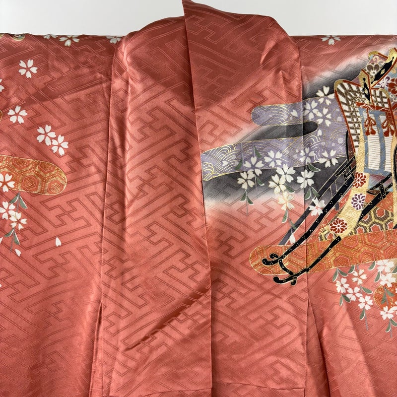 【振袖】 赤系 ピンク 逸品 B 約150cm~約159cm 裄丈66cm (M)size 袖丈91cm以上 30000- 五万以下