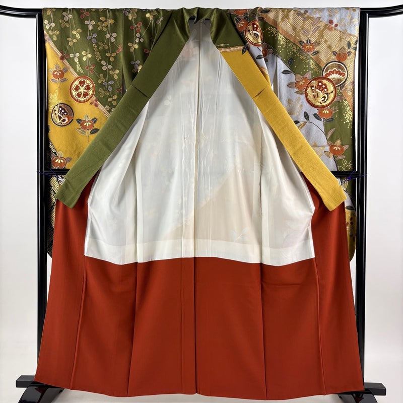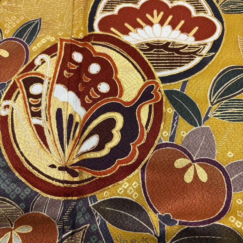 【振袖】 黄色系 山吹茶色 名品 C 約160cm~約169cm 裄丈63cm-64cm (M)size 袖丈91cm以上 9990-29990 二万以下